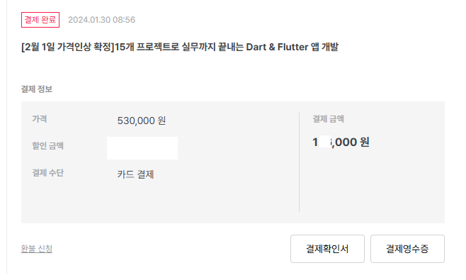 이래저래 강좌를 많이 알아보다 보니 연관 검색어로 패스트 캠퍼스의 앱개발 강좌의 광고가 나왔고 내가 원하는 내용이 모두 담겨 있어 유료 결재를 하게 되었습니다.