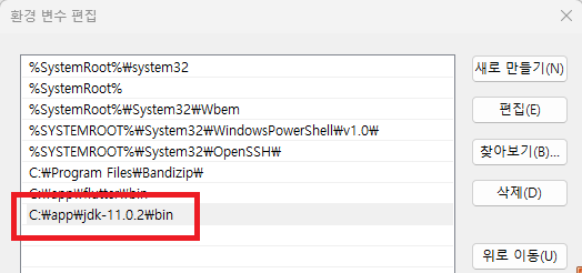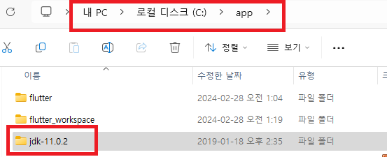 다운로드한 jdk 압축파일을 원하는 경로에 압축 해제 후 해당 java의 bin 폴더를 환경 변수(1. 플러터 SDK 설치 시 환경변수 등록 방법과 같음)에 등록해 줍니다.