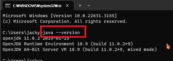 java 가 환경변수에 제대로 적용되었는지 커맨드창에서 java --version을 입력하여 버전이 정상적으로 출력되는지 확인합니다.