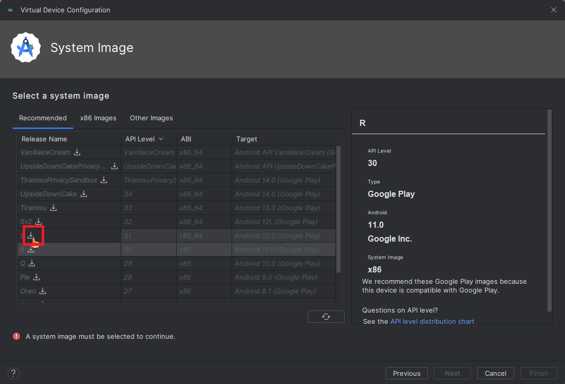가상 장치에 설치할 OS를 다운로드합니다.